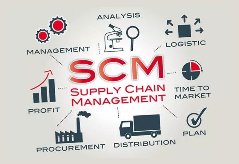 Supply chain management (SCM) is now a broad range of activities for planning, controlling and executing not just the flow of materials for producing a product, but the product's distribution to wholesalers, retailers and end customers.